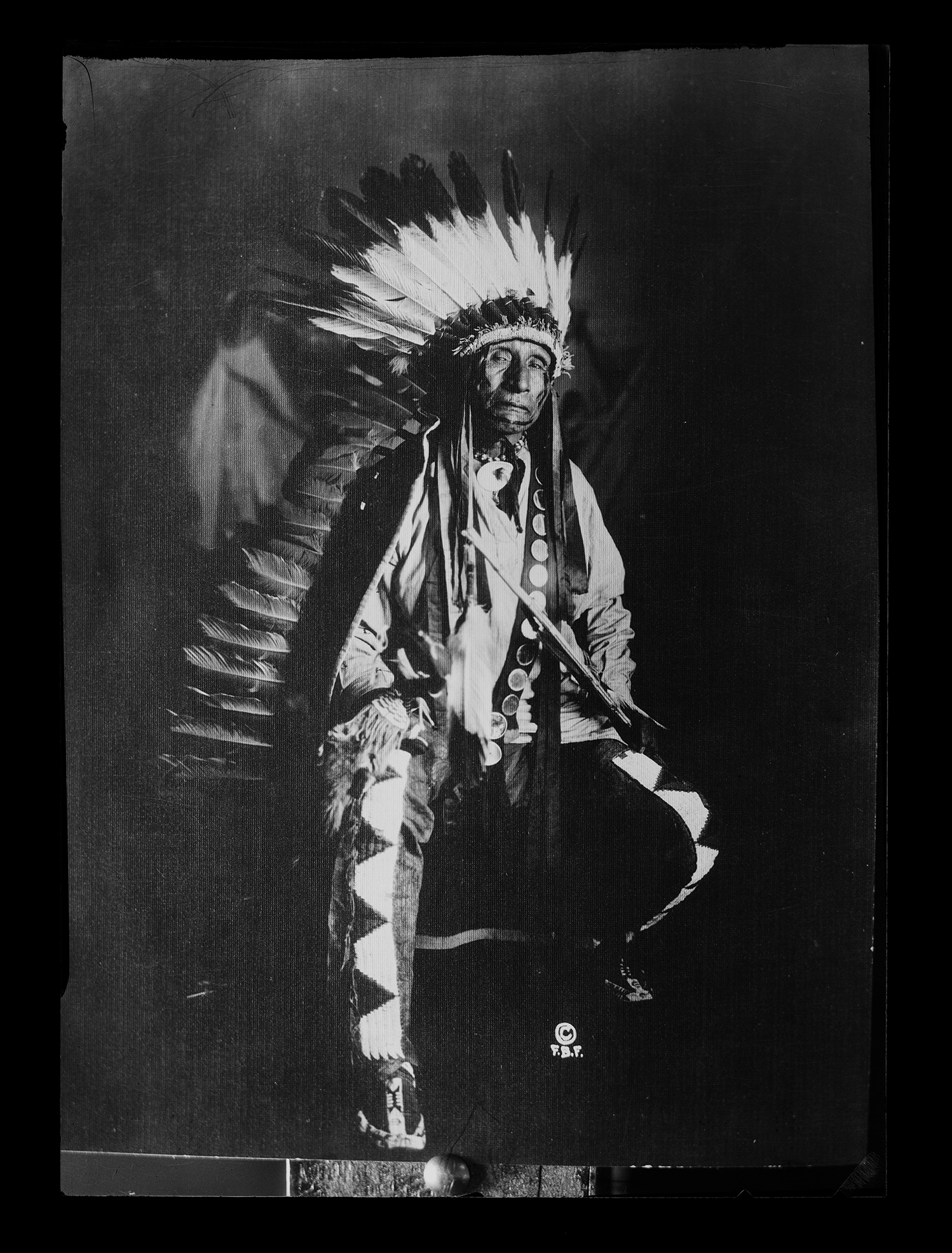 Summary: Includes prints and negatives of portraits, agriculture, education, wildlife, hunting, Frank Fiske studio portraits, and some views of South Dakota. Fiske’s Native American photographs include portraits, Indian gatherings and ceremonies, boarding schools, Indian houses and dwellings, and Native American agriculture. Fiske’s documentation of daily life on the reservation includes such shots as Sioux customers waiting for a Fort Yates trading store to open; a Sioux dance in the streets of Fort Yates; a plow issue before the agency boarding school; an encampment of tipis, including those traditionally painted; and three Indian men being taxied off the reservation to join the army in WWI.