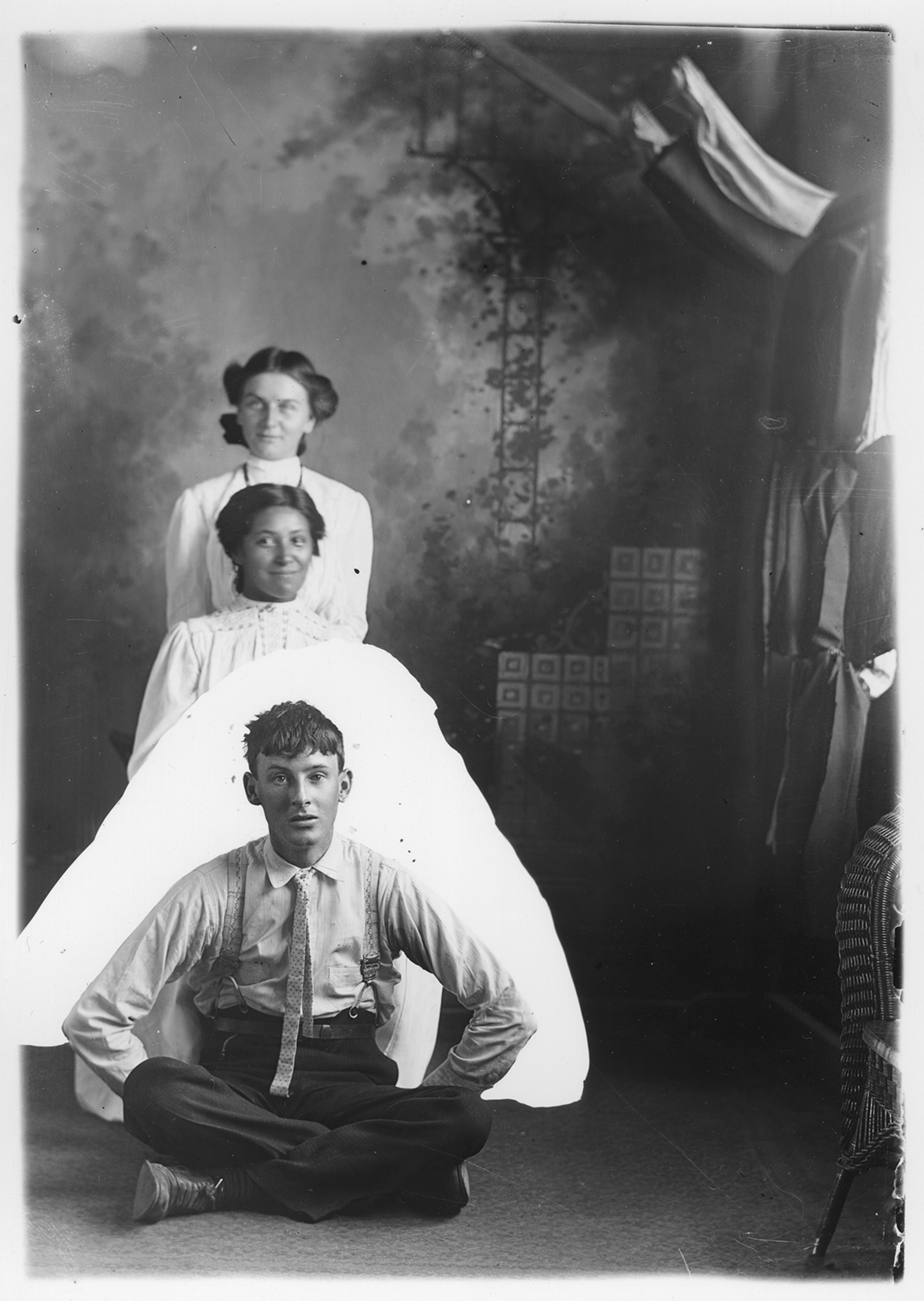 Summary: Includes prints and negatives of portraits, agriculture, education, wildlife, hunting, Frank Fiske studio portraits, and some views of South Dakota. Fiske’s Native American photographs include portraits, Indian gatherings and ceremonies, boarding schools, Indian houses and dwellings, and Native American agriculture. Fiske’s documentation of daily life on the reservation includes such shots as Sioux customers waiting for a Fort Yates trading store to open; a Sioux dance in the streets of Fort Yates; a plow issue before the agency boarding school; an encampment of tipis, including those traditionally painted; and three Indian men being taxied off the reservation to join the army in WWI.
