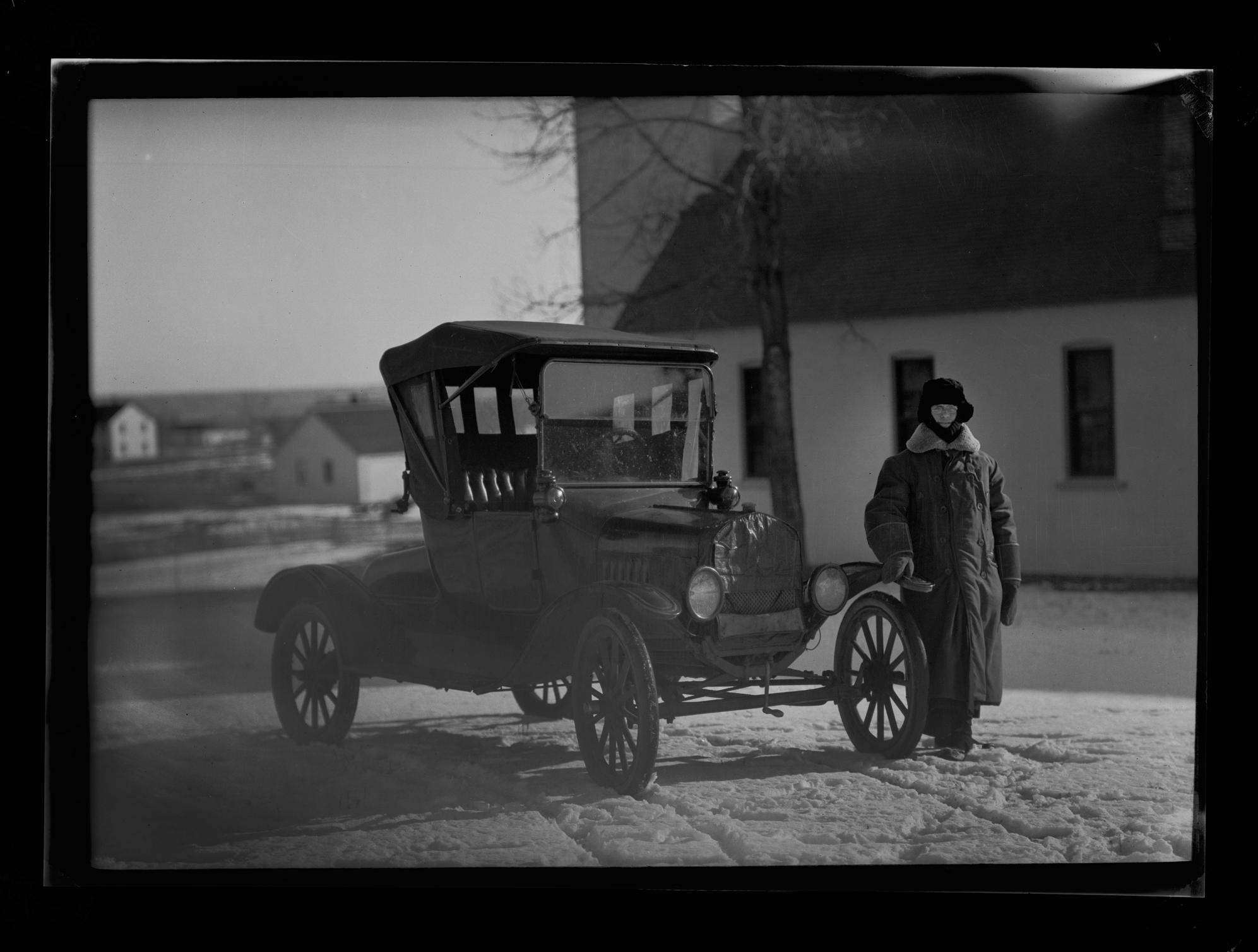 Summary: Includes prints and negatives of portraits, agriculture, education, wildlife, hunting, Frank Fiske studio portraits, and some views of South Dakota. Fiske’s Native American photographs include portraits, Indian gatherings and ceremonies, boarding schools, Indian houses and dwellings, and Native American agriculture. Fiske’s documentation of daily life on the reservation includes such shots as Sioux customers waiting for a Fort Yates trading store to open; a Sioux dance in the streets of Fort Yates; a plow issue before the agency boarding school; an encampment of tipis, including those traditionally painted; and three Indian men being taxied off the reservation to join the army in WWI.