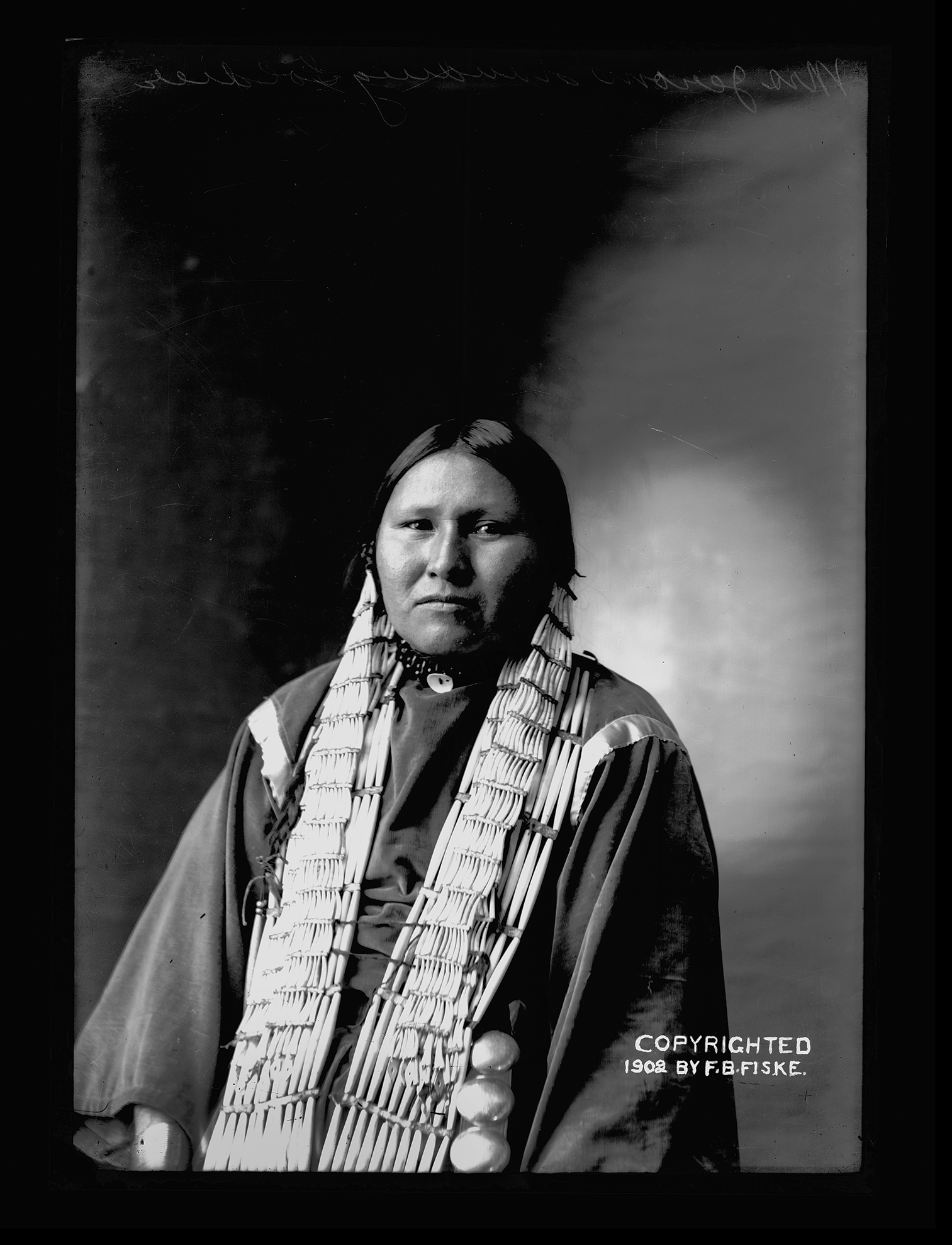 Summary: Includes prints and negatives of portraits, agriculture, education, wildlife, hunting, Frank Fiske studio portraits, and some views of South Dakota. Fiske’s Native American photographs include portraits, Indian gatherings and ceremonies, boarding schools, Indian houses and dwellings, and Native American agriculture. Fiske’s documentation of daily life on the reservation includes such shots as Sioux customers waiting for a Fort Yates trading store to open; a Sioux dance in the streets of Fort Yates; a plow issue before the agency boarding school; an encampment of tipis, including those traditionally painted; and three Indian men being taxied off the reservation to join the army in WWI.