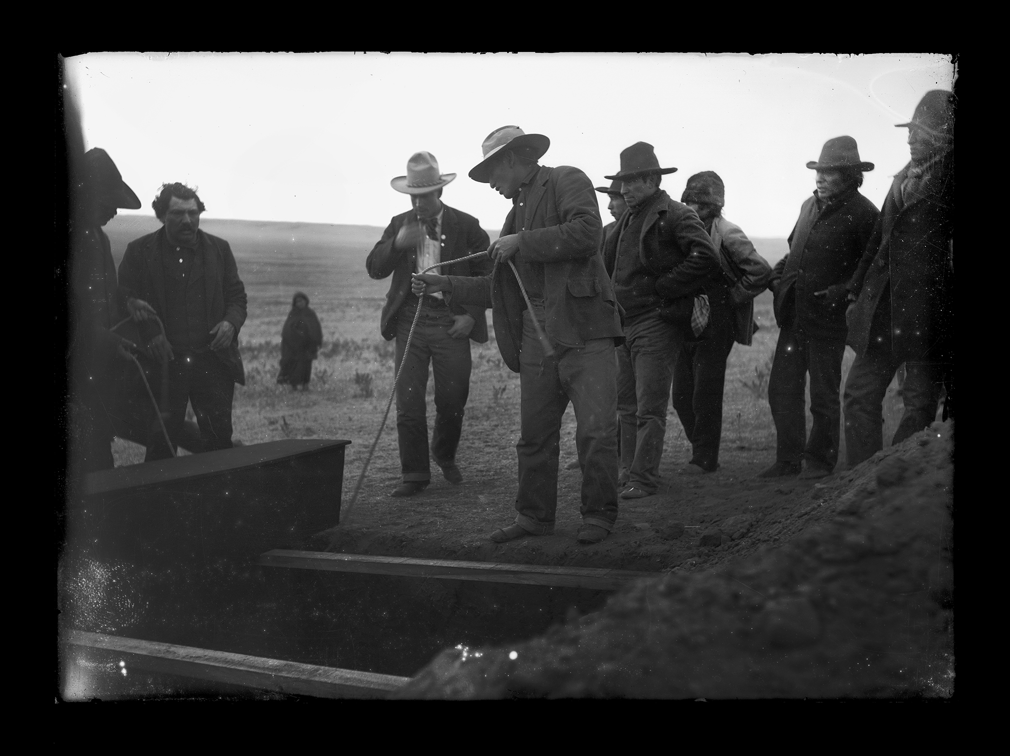 Summary: Includes prints and negatives of portraits, agriculture, education, wildlife, hunting, Frank Fiske studio portraits, and some views of South Dakota. Fiske’s Native American photographs include portraits, Indian gatherings and ceremonies, boarding schools, Indian houses and dwellings, and Native American agriculture. Fiske’s documentation of daily life on the reservation includes such shots as Sioux customers waiting for a Fort Yates trading store to open; a Sioux dance in the streets of Fort Yates; a plow issue before the agency boarding school; an encampment of tipis, including those traditionally painted; and three Indian men being taxied off the reservation to join the army in WWI.