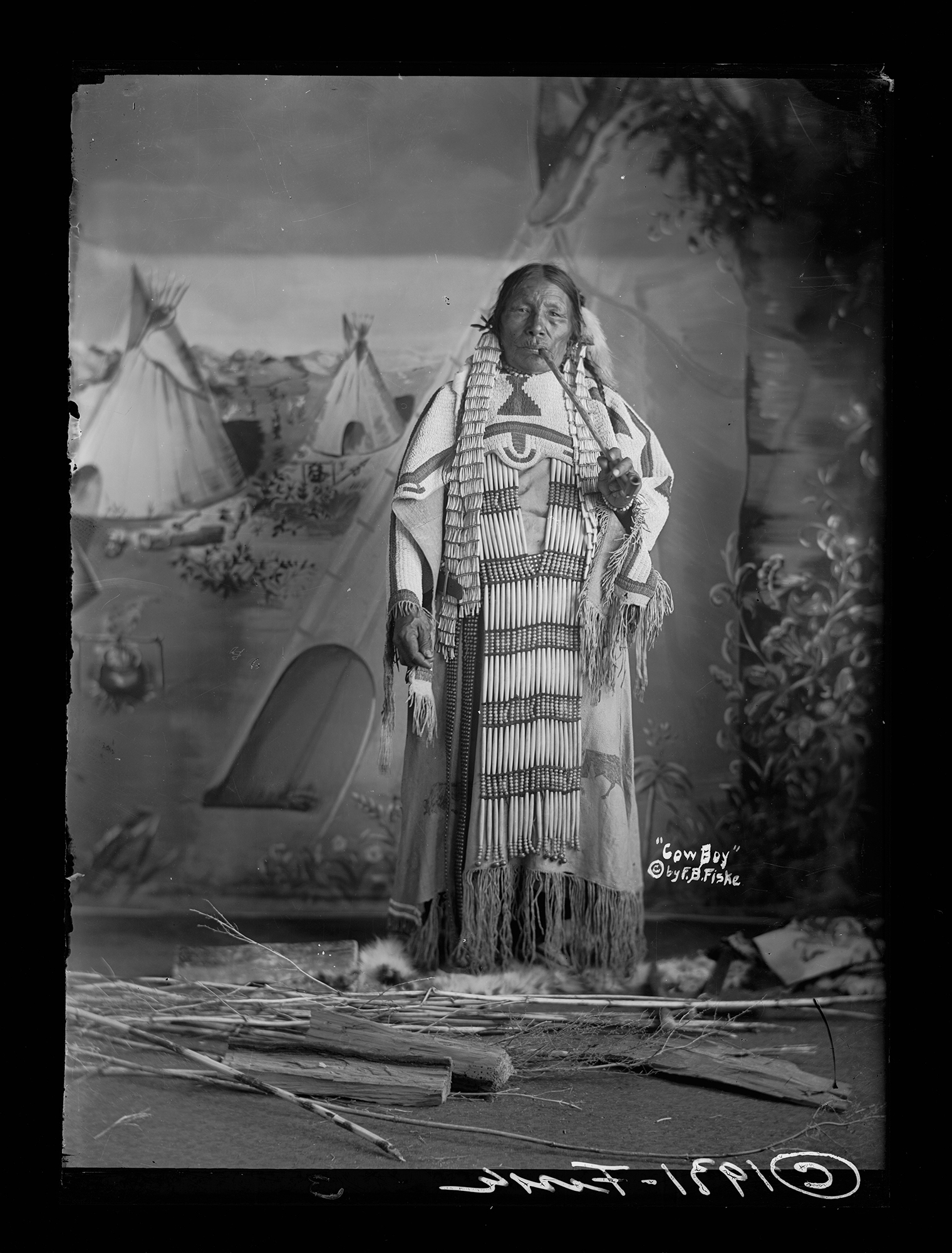Summary: Includes prints and negatives of portraits, agriculture, education, wildlife, hunting, Frank Fiske studio portraits, and some views of South Dakota. Fiske’s Native American photographs include portraits, Indian gatherings and ceremonies, boarding schools, Indian houses and dwellings, and Native American agriculture. Fiske’s documentation of daily life on the reservation includes such shots as Sioux customers waiting for a Fort Yates trading store to open; a Sioux dance in the streets of Fort Yates; a plow issue before the agency boarding school; an encampment of tipis, including those traditionally painted; and three Indian men being taxied off the reservation to join the army in WWI.