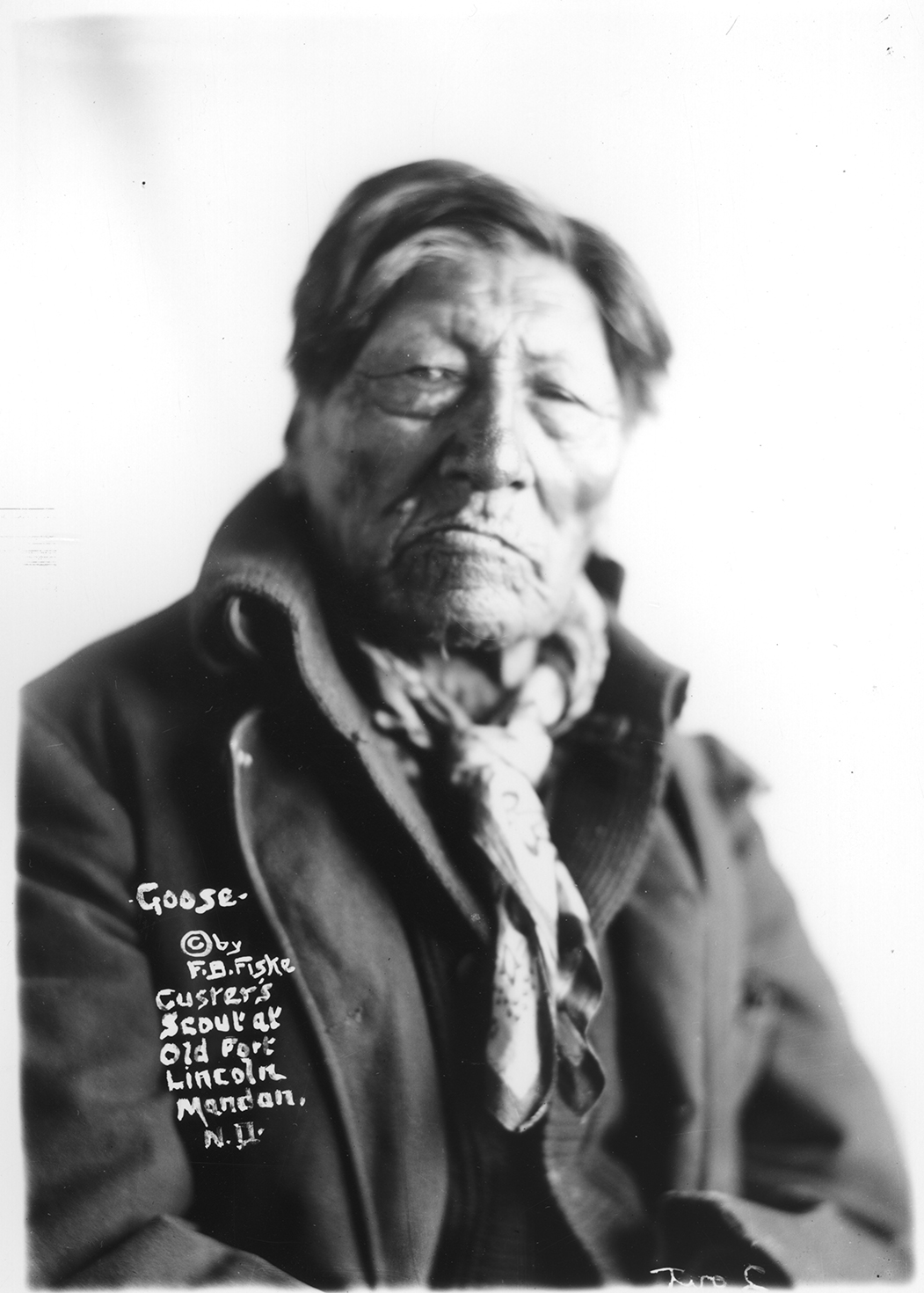 Title: "Goose, Custer's Scout at Old Fort Lincoln, Mandan, N.D."