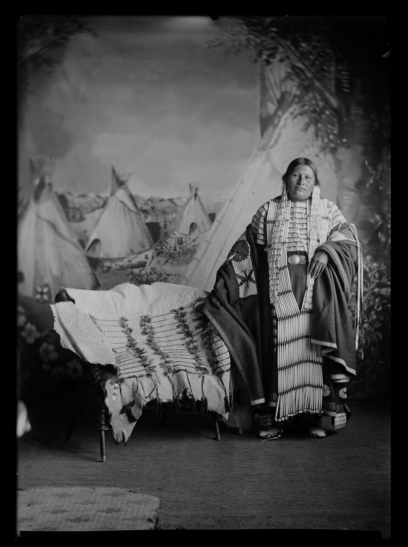 Summary: Includes prints and negatives of portraits, agriculture, education, wildlife, hunting, Frank Fiske studio portraits, and some views of South Dakota. Fiske’s Native American photographs include portraits, Indian gatherings and ceremonies, boarding schools, Indian houses and dwellings, and Native American agriculture. Fiske’s documentation of daily life on the reservation includes such shots as Sioux customers waiting for a Fort Yates trading store to open; a Sioux dance in the streets of Fort Yates; a plow issue before the agency boarding school; an encampment of tipis, including those traditionally painted; and three Indian men being taxied off the reservation to join the army in WWI.