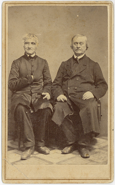 Summary: Father Pierre-Jean De Smet and an unknown man sit posed for a photograph. Two images. Photographer: Nichols & Howard, St. Louis