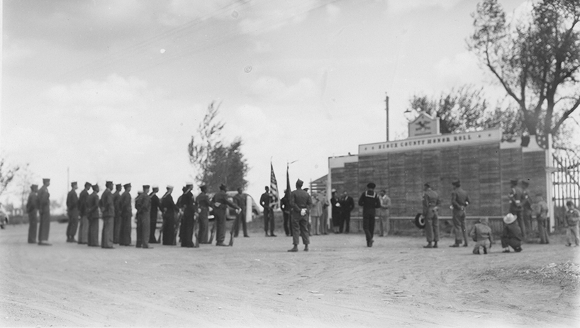 Summary: Men in military uniforms and an honor guard meet at the Sioux County Honor Roll for a ceremonial changing of the guard.