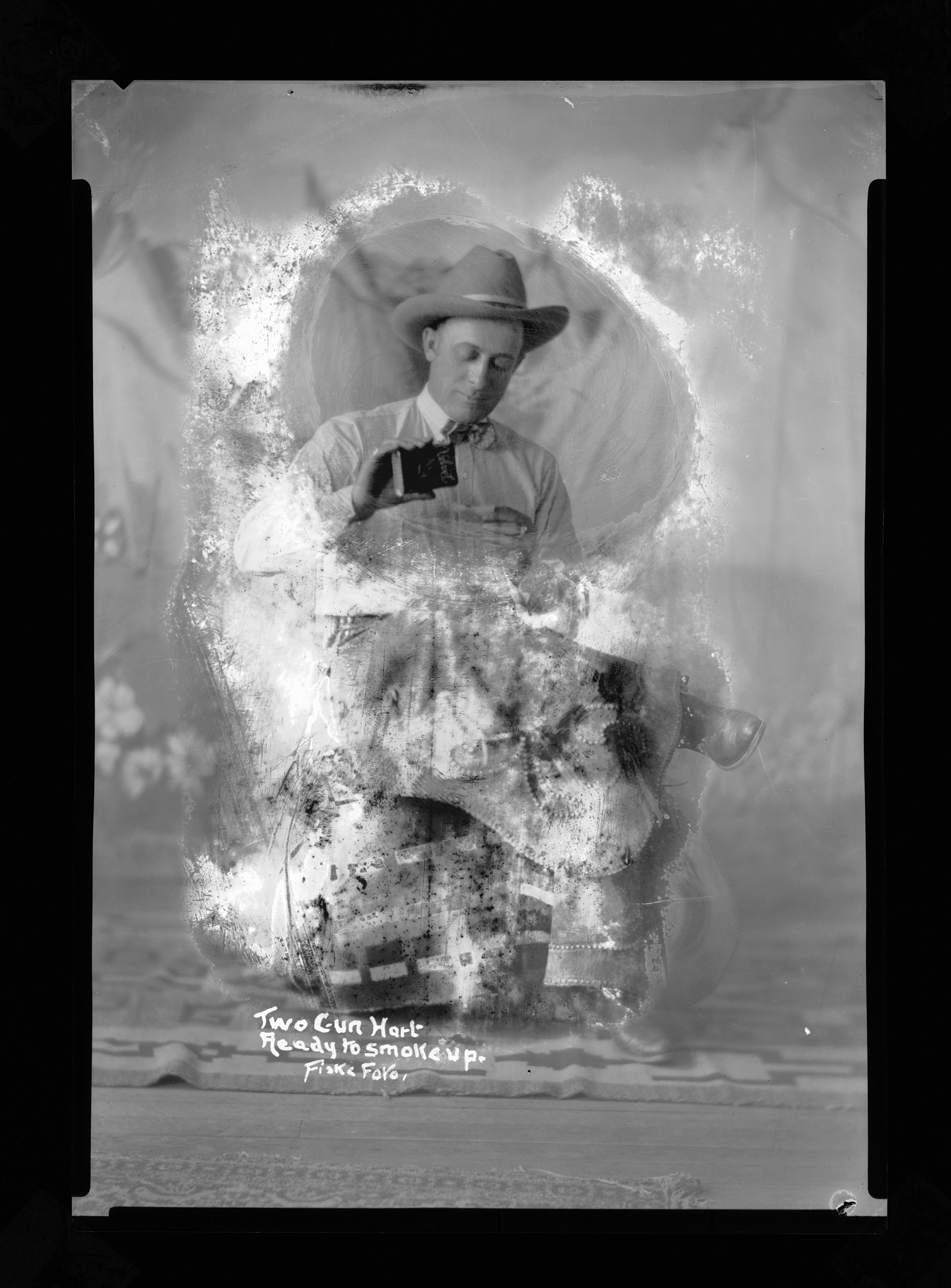 Inscription/Marks: [back] Two Gun Hart (Al Capone's brother) [in red gouache on negative emulsion] Two Gun Hart Ready to smoke up Fiske photo