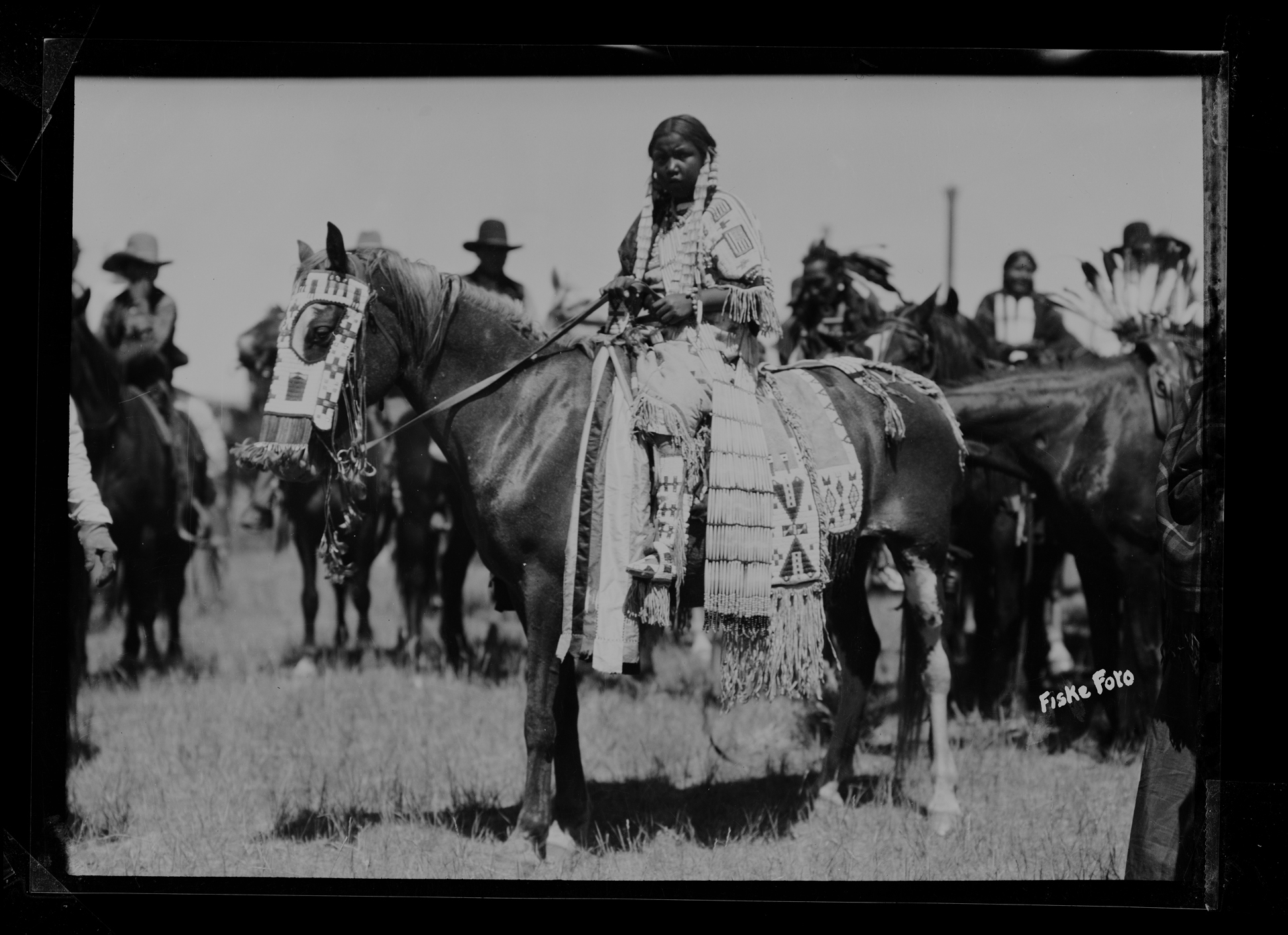 Summary: Includes prints and negatives of portraits, agriculture, education, wildlife, hunting, Frank Fiske studio portraits, and some views of South Dakota. Fiske’s Native American photographs include portraits, Indian gatherings and ceremonies, boarding schools, Indian houses and dwellings, and Native American agriculture. Fiske’s documentation of daily life on the reservation includes such shots as Sioux customers waiting for a Fort Yates trading store to open; a Sioux dance in the streets of Fort Yates; a plow issue before the agency boarding school; an encampment of tipis, including those traditionally painted; and three Indian men being taxied off the reservation to join the army in WWI.