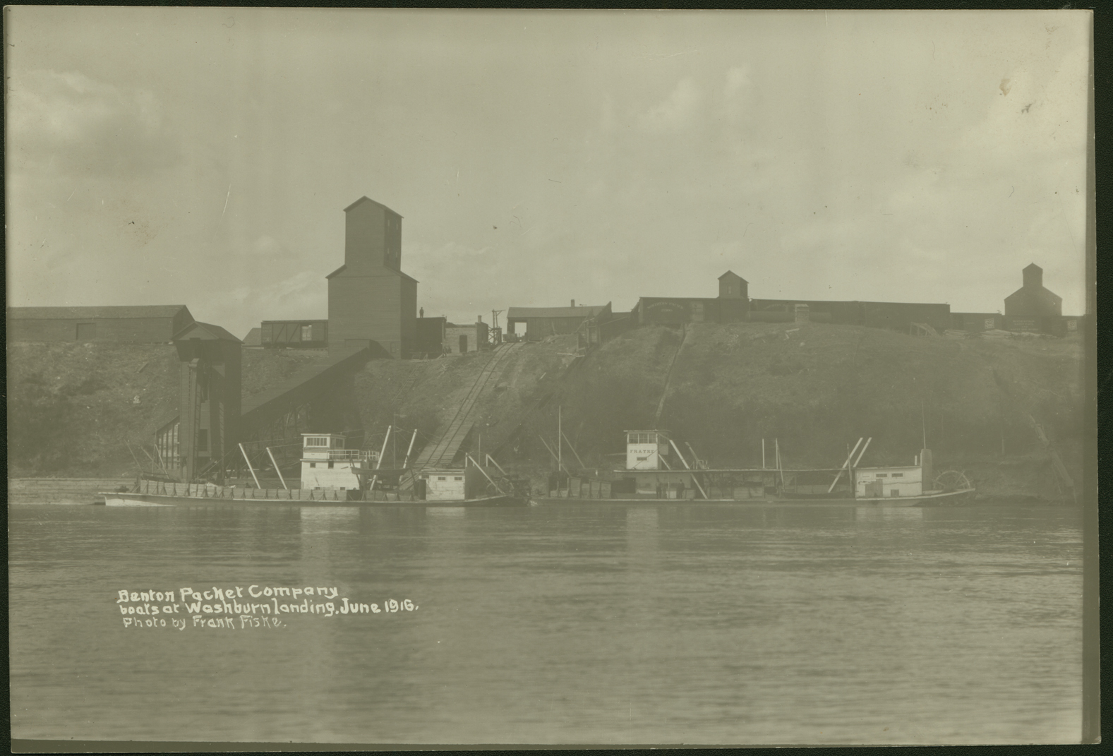 Title: Expansion and Frayne, Benton Packet Co. boats at the landing, Washburn (N.D.)