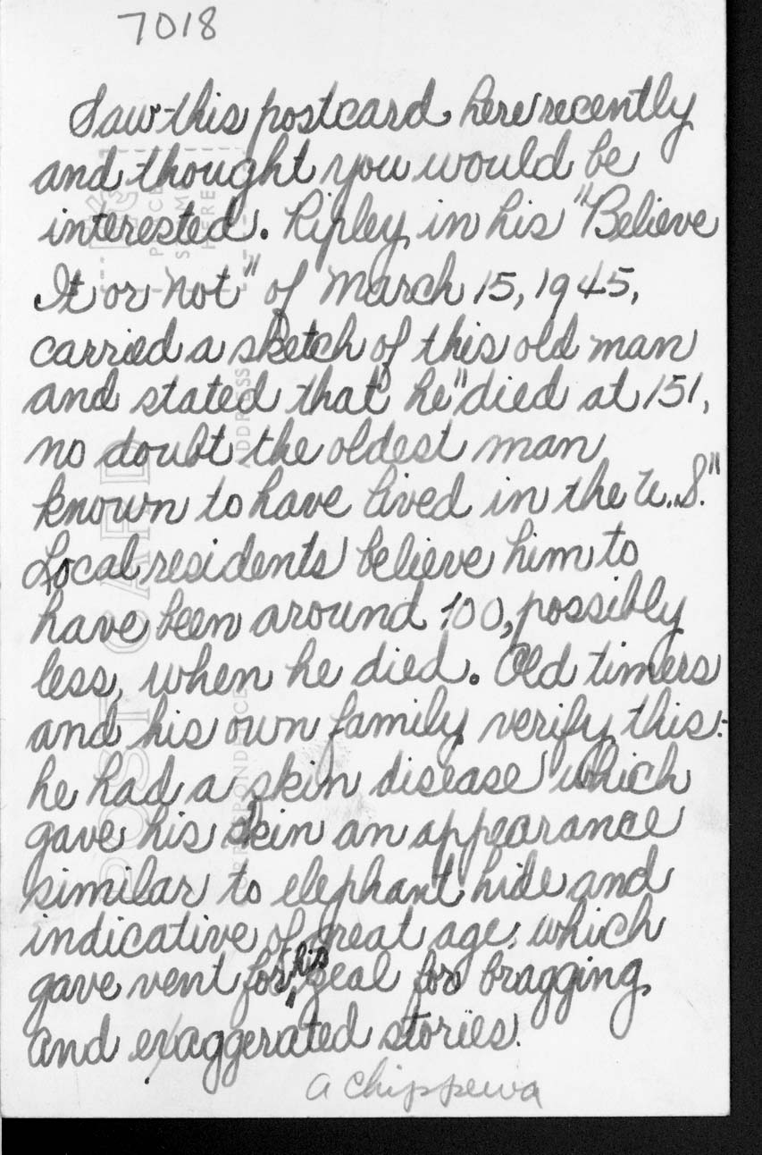 Title: "John Smith, age 130, Cass Lake, Minn."
