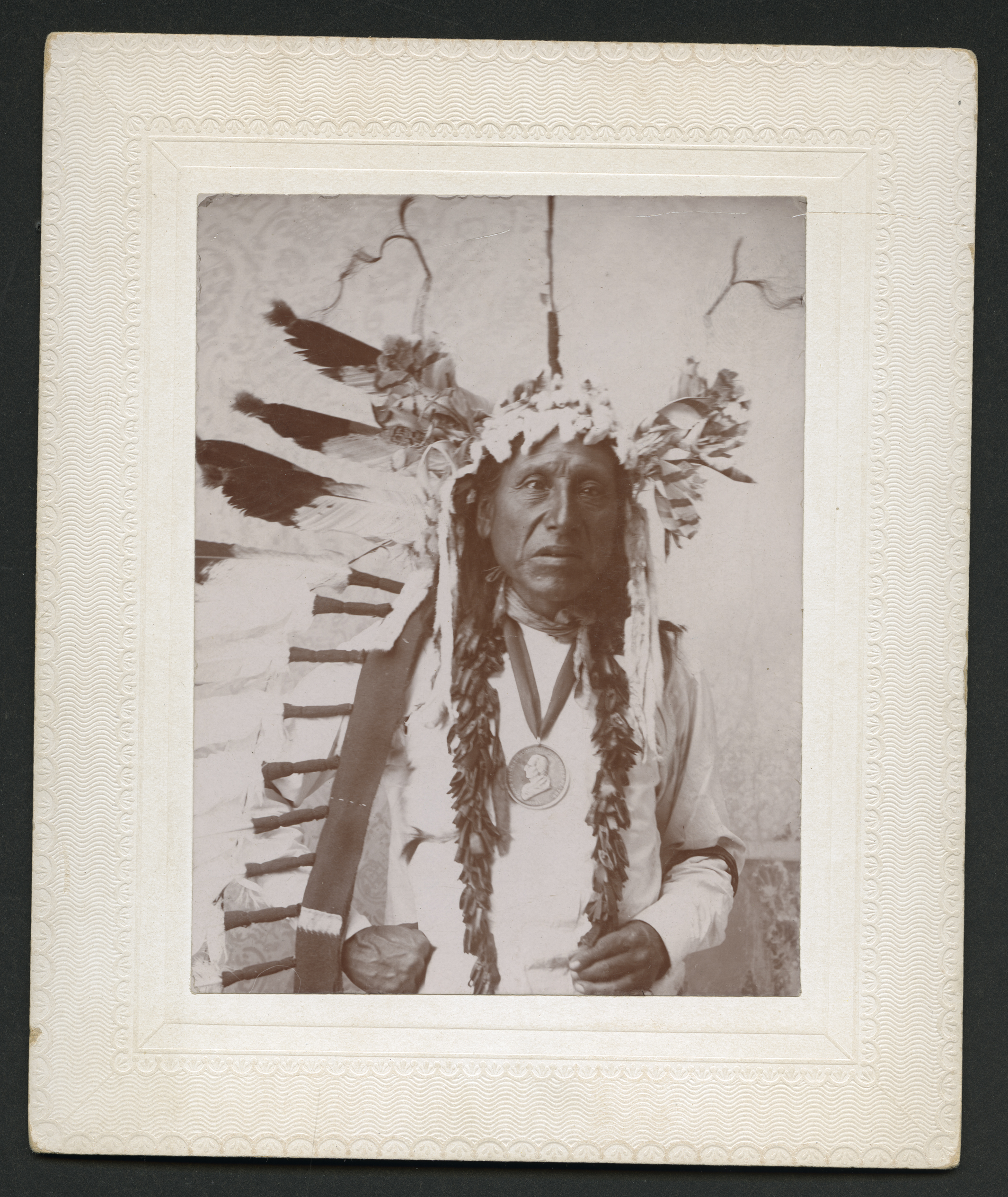 Summary: Medicine man and old time warrior. He wears a peace medal and headdress.
