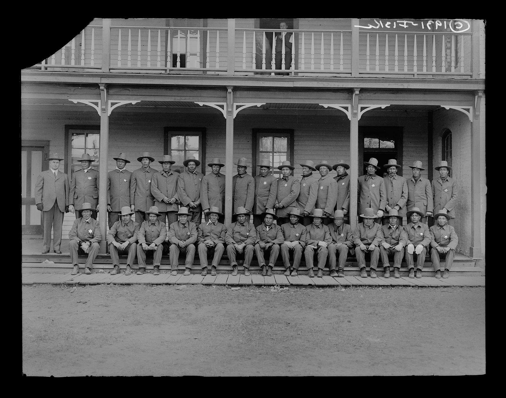 Collection Summary: Includes prints and negatives of portraits, agriculture, education, wildlife, hunting, Frank Fiske studio portraits, and some views of South Dakota. Fiske’s Native American photographs include portraits, Indian gatherings and ceremonies, boarding schools, Indian houses and dwellings, and Native American agriculture. Fiske’s documentation of daily life on the reservation includes such shots as Sioux customers waiting for a Fort Yates trading store to open; a Sioux dance in the streets of Fort Yates; a plow issue before the agency boarding school; an encampment of tipis, including those traditionally painted; and three Indian men being taxied off the reservation to join the army in WWI.