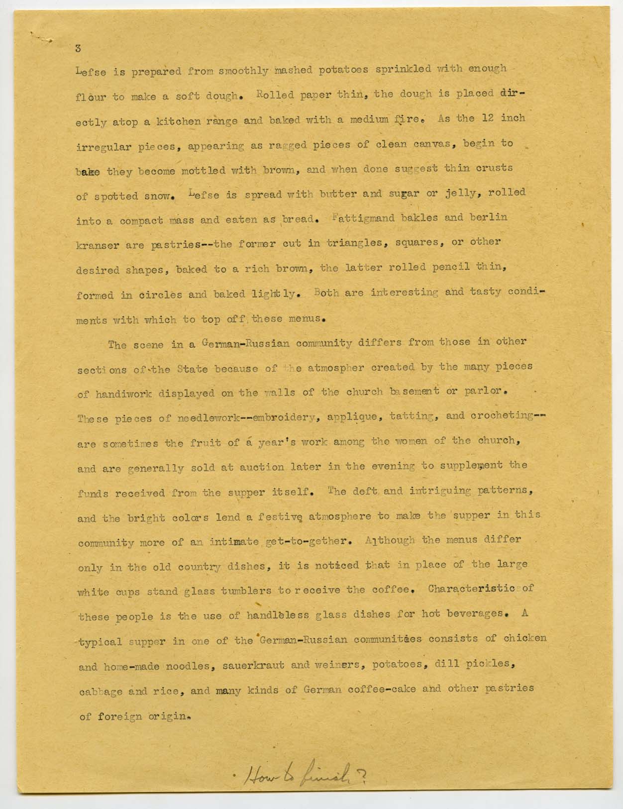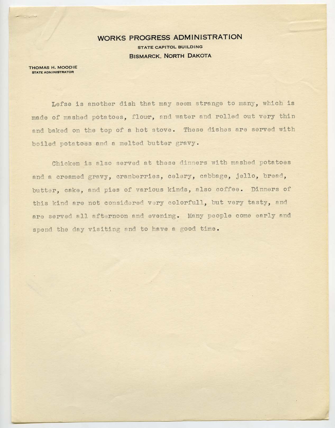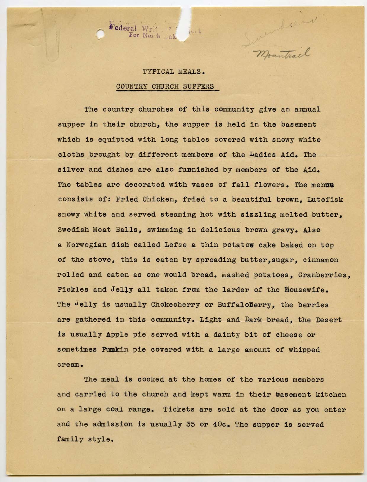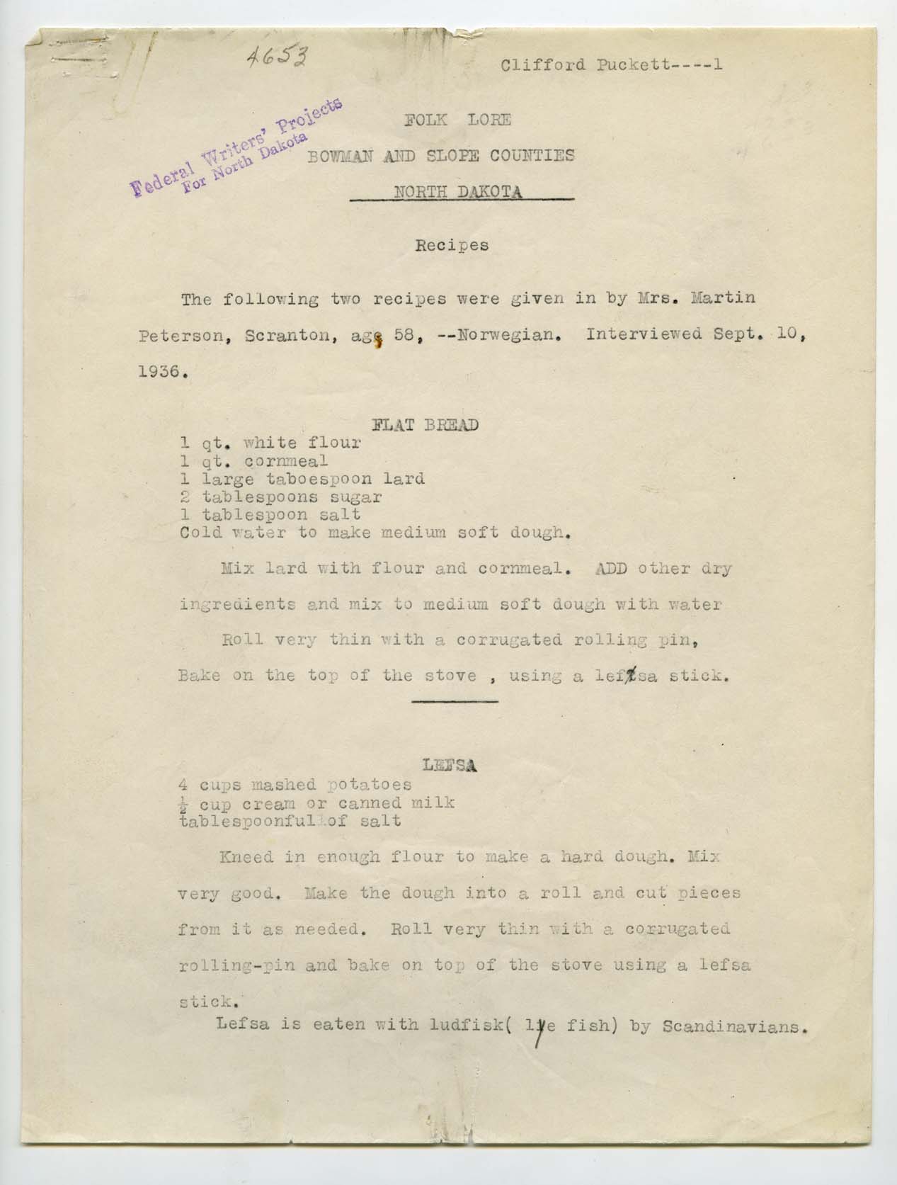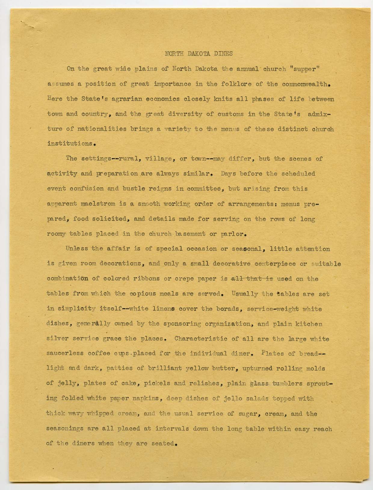Collection: 30561 - Historical Society. North Dakota Writers' Project. America Eats Files.