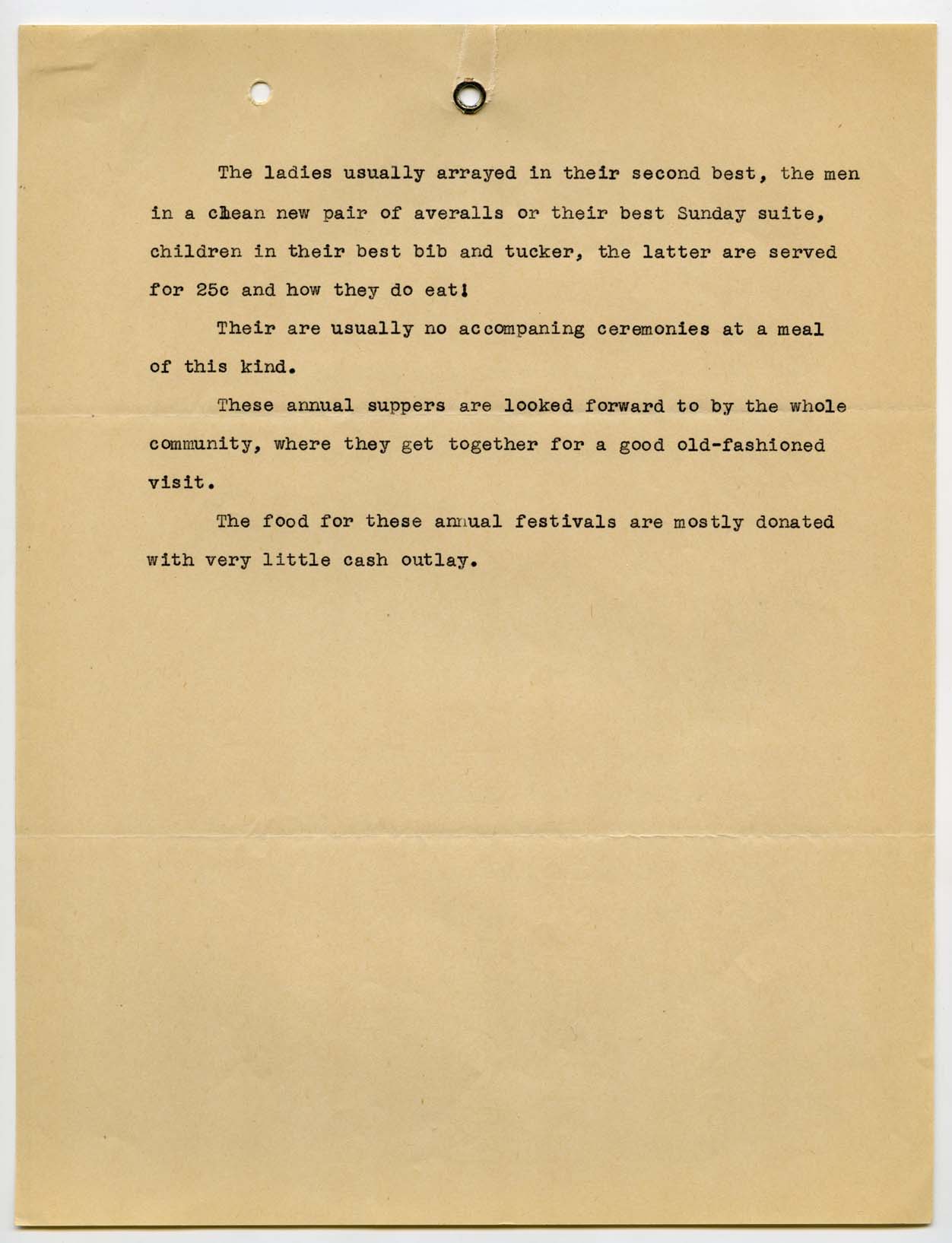Title: Draft essay about county church suppers in Mountrail County, North Dakota, author unknown