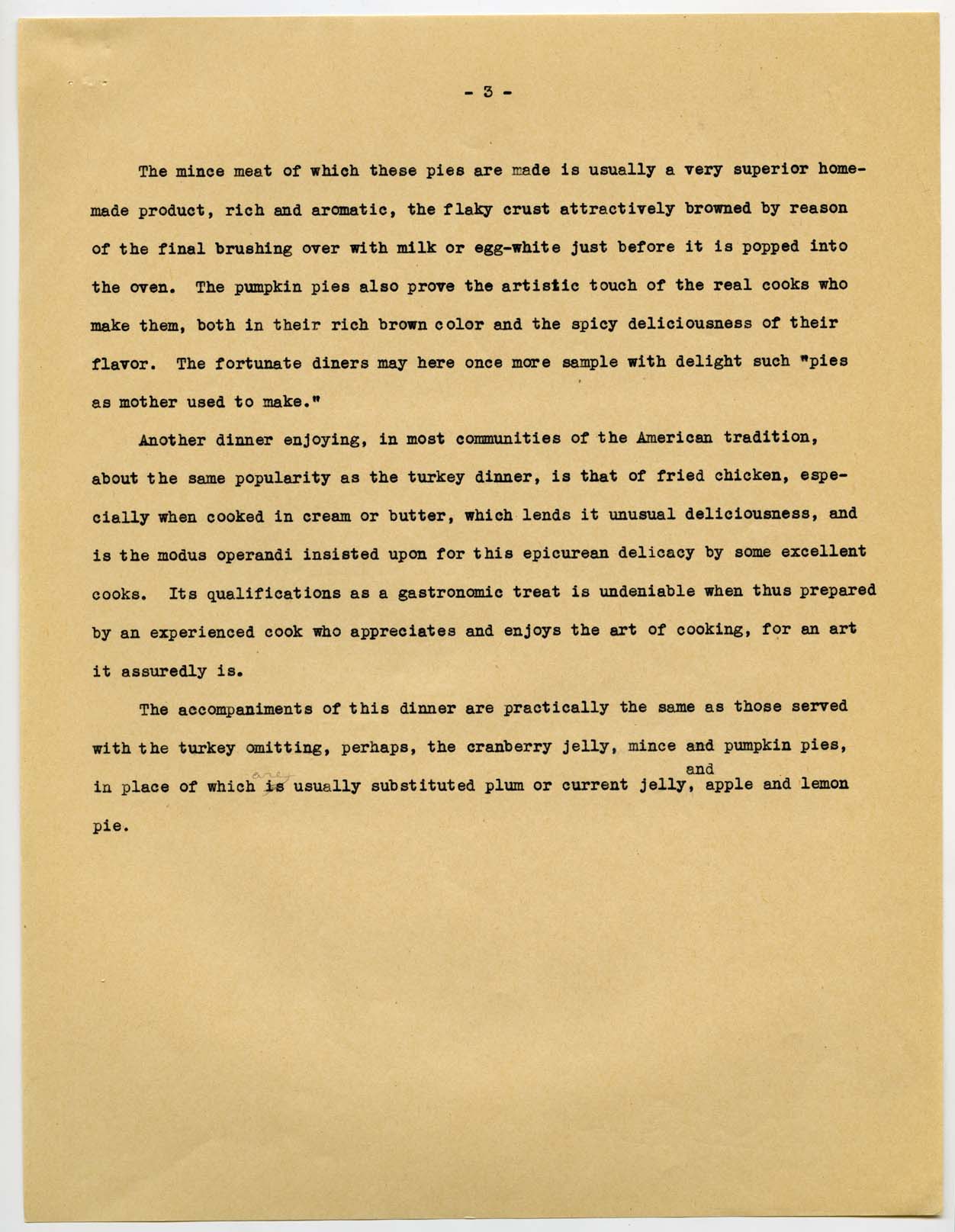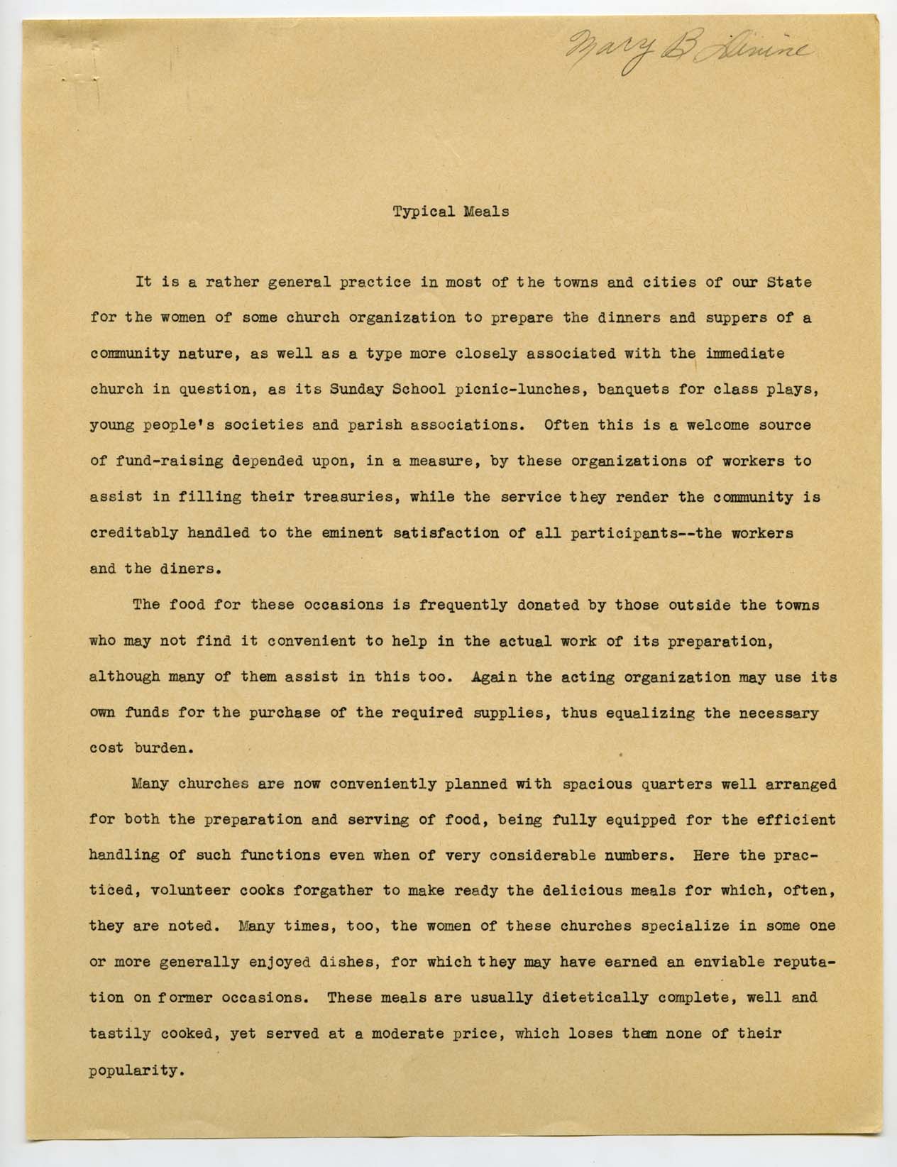 Title: Draft essay about typical meals in North Dakota, by Mary B. Divine