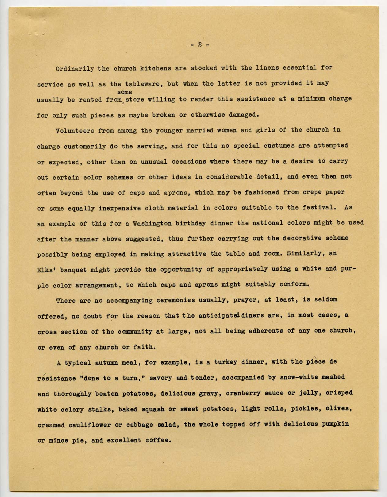 Title: Draft essay about annual church suppers in North Dakota, author unknown
