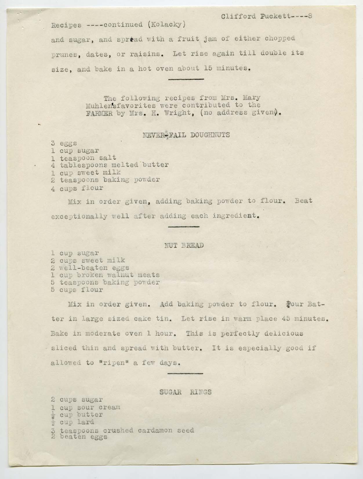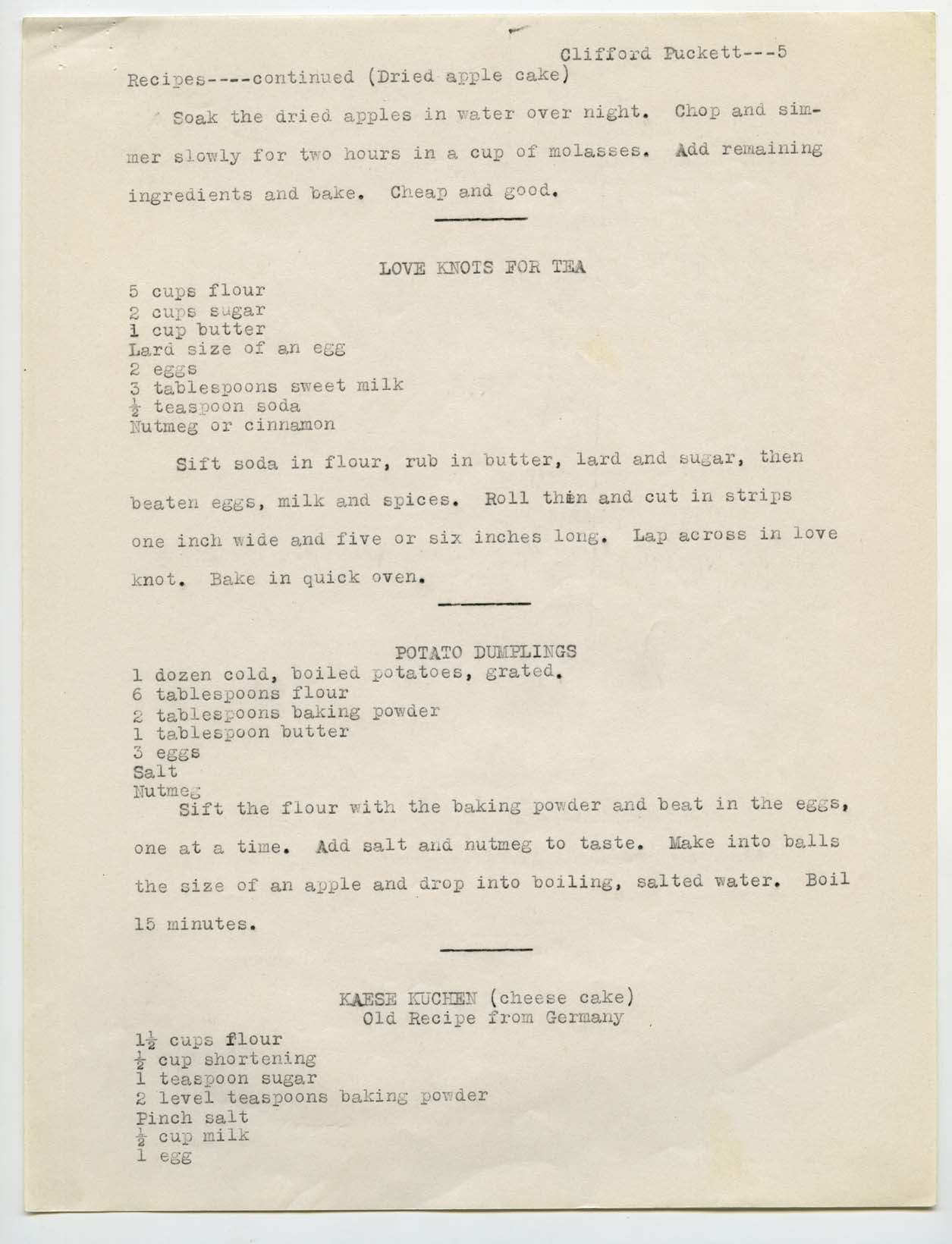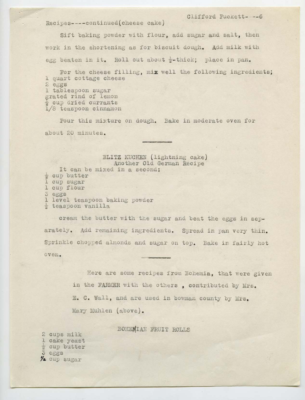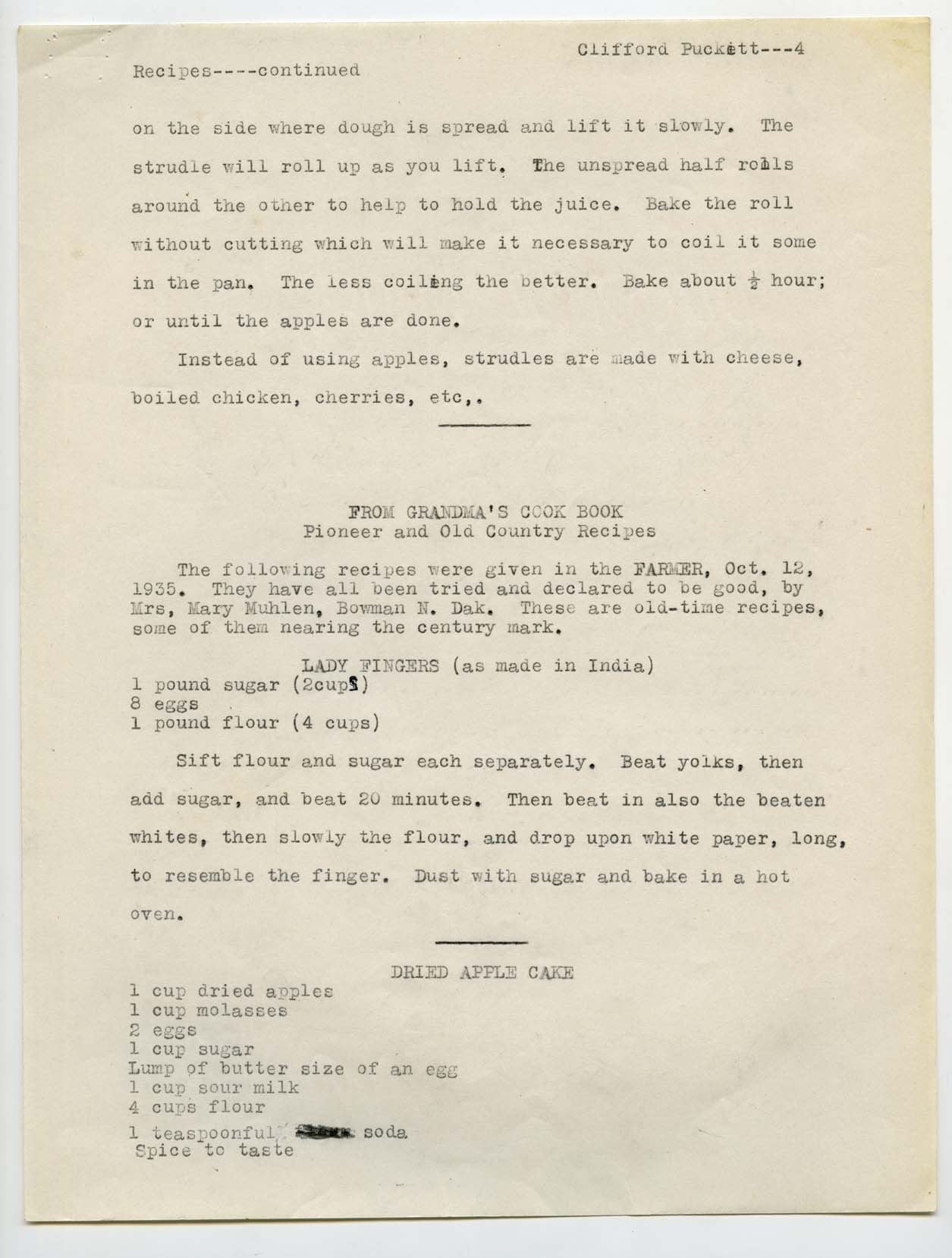 Title: Recipes, Bowman and Slope Counties, North Dakota, by Clifford Puckett